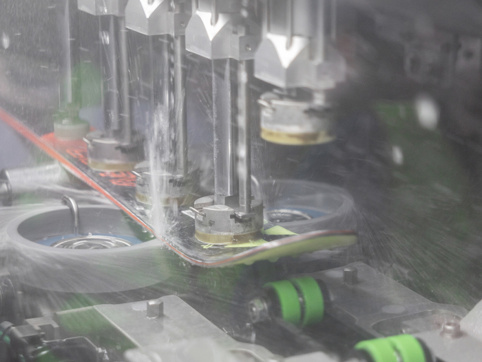 A synthetic coolant is added to the grinding water in ski service machines to cool skis and tools during the grinding process. The coolant also increases the biostability of the water and protects the metal edges of the skis and snowboards, as well as the components of the ski service machines, from corrosion. Together with the manufacturers, WINTERSTEIGER continuously adjusts the composition of the cooling lubricants to optimize their effectiveness. Unlike other manufacturers, WINTERSTEIGER uses synthetic cooling lubricants that are not based on mineral oil.