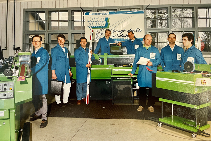 Getting started in the ski service industry was difficult in the early 1980s, and the first multi-purpose surface grinding machine – the MPS – was followed by the TSMA-A, the first stone and belt grinding machine. The first base repair machines were another milestone that caused quite a sensation.