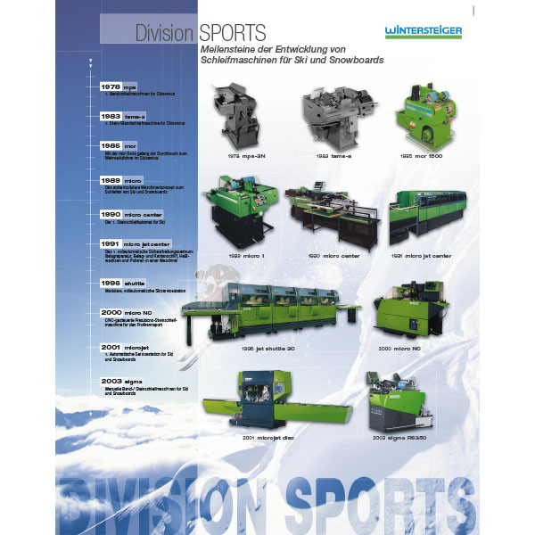 However, the breakthrough at Sports came 1985 with the MCR stone grinding machines: while 150 were planned, sales in the first year alone numbered 400! One reason for the sensational success was the low price for the high-quality machine which was intended for the goal of penetrating the market. This was followed by the stone grinding machines of the Micro series, featuring a modular, space-saving design. The Micro series machines have also made it possible to produce reproducible ski base structures. These machines allowed WINTERSTEIGER to make the breakthrough as world market leader in ski servicing.