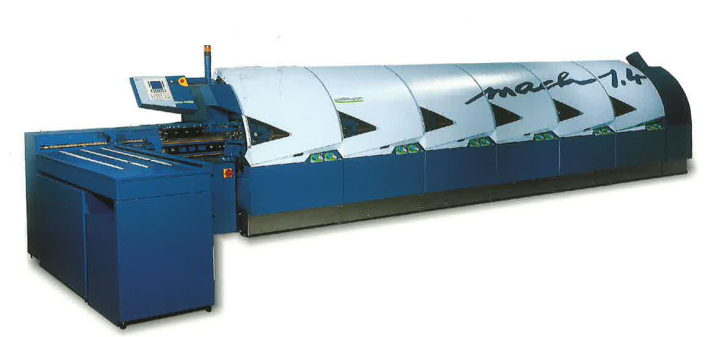 The question of better saw technology divided colleagues into proponents of the circular saw associated with development manager Erwin Sturmair and into the pro-band saw group with designer Reinhold Mayr. Initially, the circular saw technology was pushed and the Mach 1.4 thin-cutting circular saw marked the start of an extensive development project. Six circular saw modules ran in succession and seven lamellas could be manufactured at the same time. The expectations of the new saw were high – short setup times and a capacity of 1,000,000 m2 per year in two-shift operation were promised to customers.