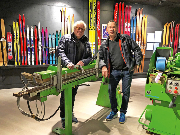 WINTERSTEIGER machines in the Norwegian ski museum. With Tomm Murstad jr. (left), a pioneer in ski repair and service. He opened Skandinavia's first ski service workshop in Oslo in 1964. Viggo Slang (right) started working with Tomm in 1982.