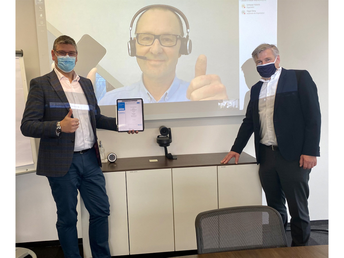 Because of Corona and Covid-19, all contracts with owner Viggo Slang were concluded digitally in December 2020. From left: CFO Harold Kostka, Viggo Slang and CEO Florestan von Boxberg.