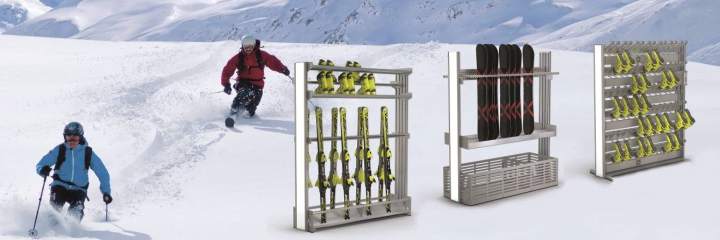 The new product line goes by the name of Easystore Basic, because it combines the basic and proven features of the Easystore line. The lightweight ski racks for storing and drying sports equipment offer a practical 3-point clamping system for securing skis, a space-saving hanging system for sports equipment of any type, and flexible height adjustment of boot shelves, just to name a few benefits.