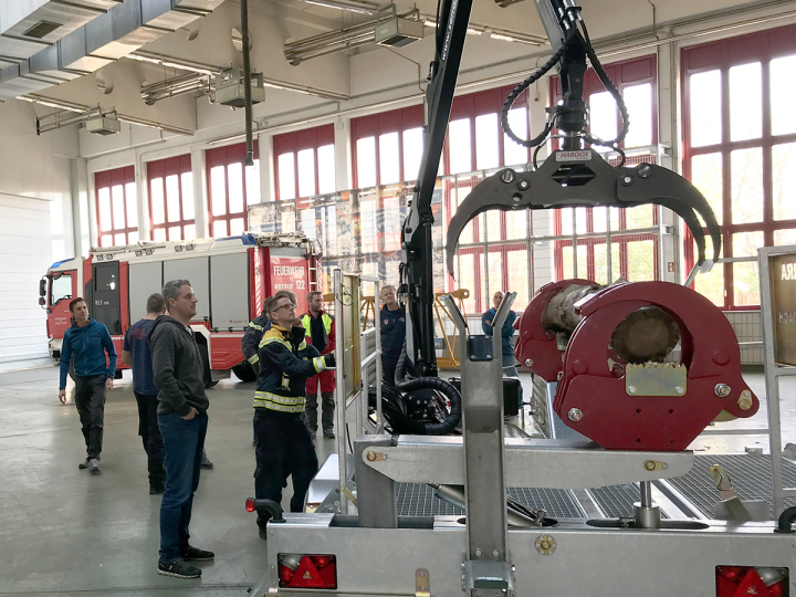 维也纳消防队也购置了这种电锯训练设备。它也是维也纳消防队的理想选择。可与起重机组合使用是它的突出特色,并让培训师能够独立地完成以下工作:培训师可以开车把 Cut Coach 运到培训地点,并且不需要再用其他车辆运输树干。